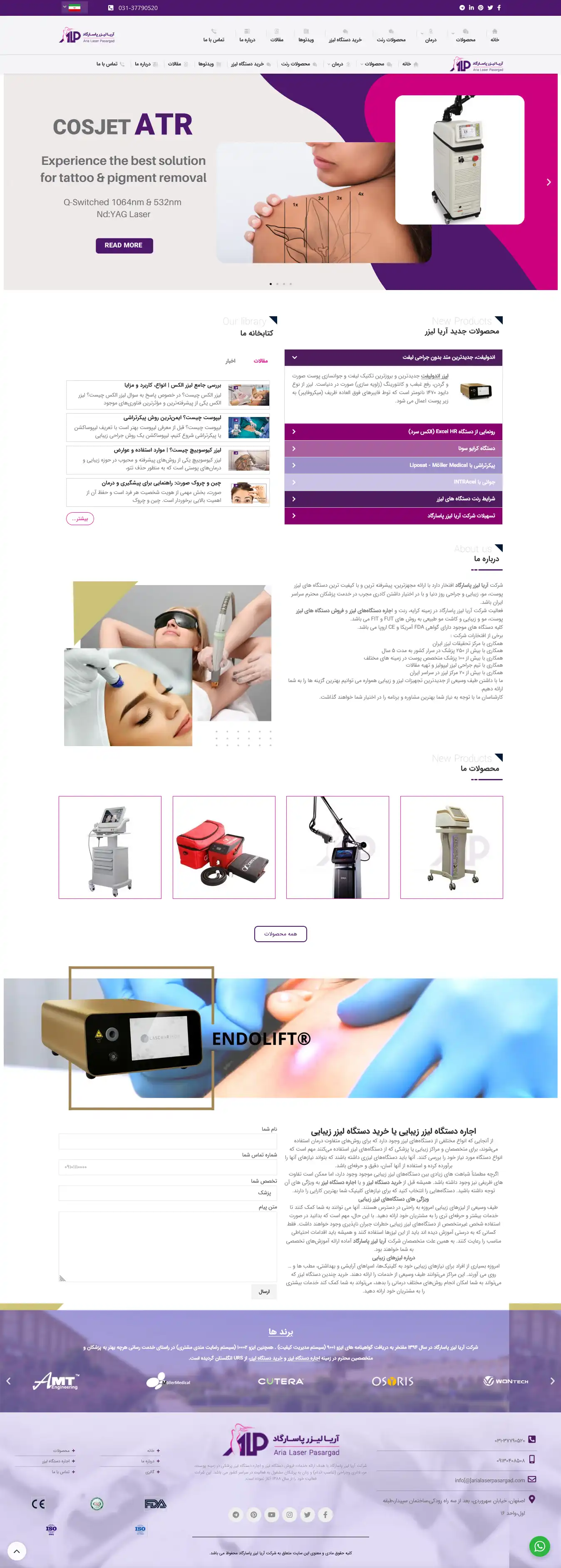 arialaserpasargad فروشگاه اینترنتی دستگاه لیزر زیبایی طراحی سایت آریا لیزر پاسارگاد طراحی وب سایت این برند معتبر توسط آژانس دیجیتال مارکتینگ تیوانا انجام شده است.