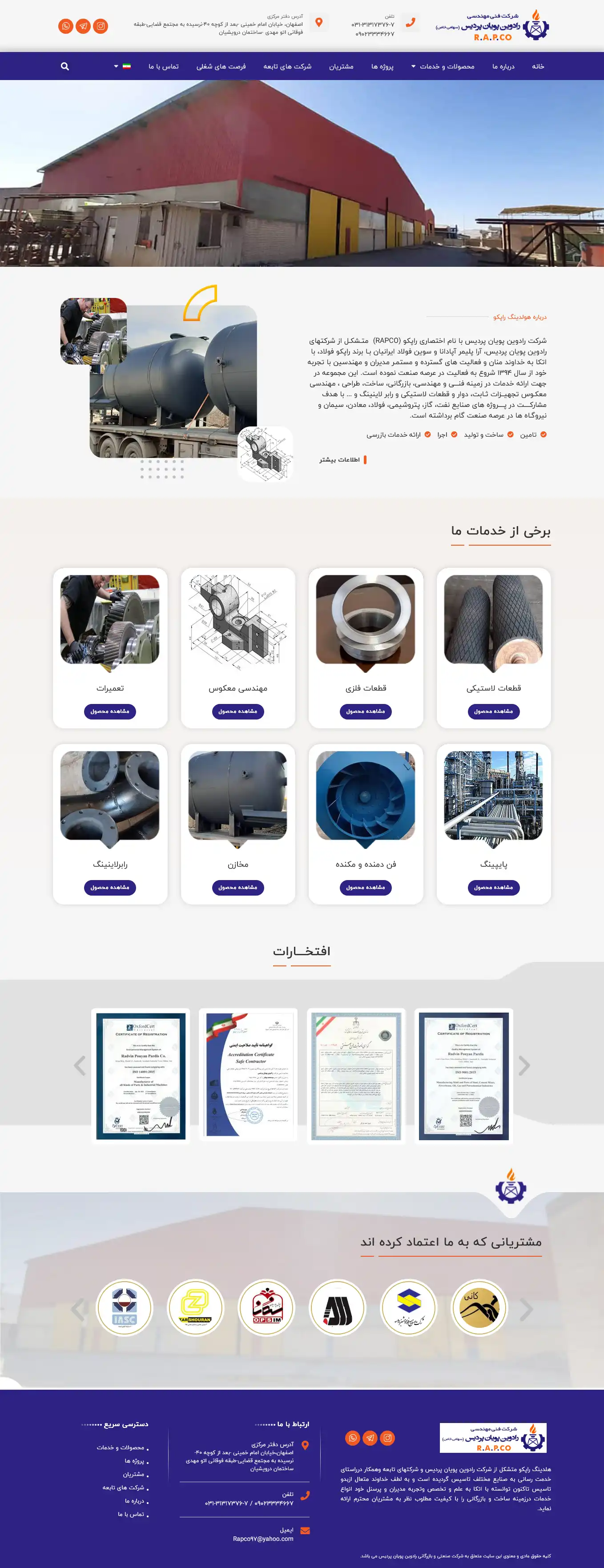 rapcoholding معرفی شرکت و محصولات طراحی سایت هلدینگ راپکو طراحی وب سایت این برند معتبر توسط آژانس دیجیتال مارکتینگ تیوانا انجام شده است. مشاهده سایت